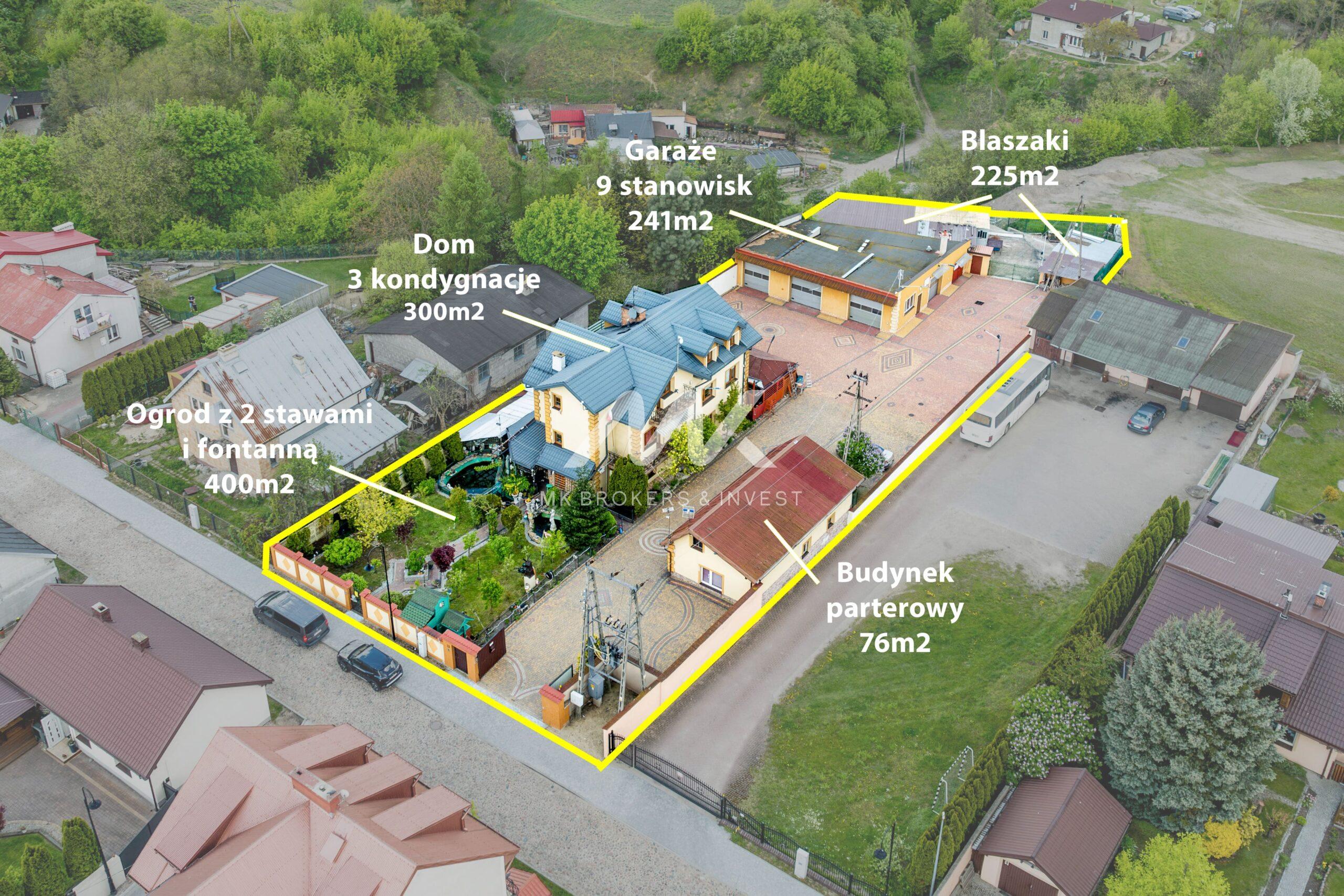 4. Budynek garażowy, mieszczący 9 stanowisk na samochody, przy domu dodatkowy garaż – 241m2