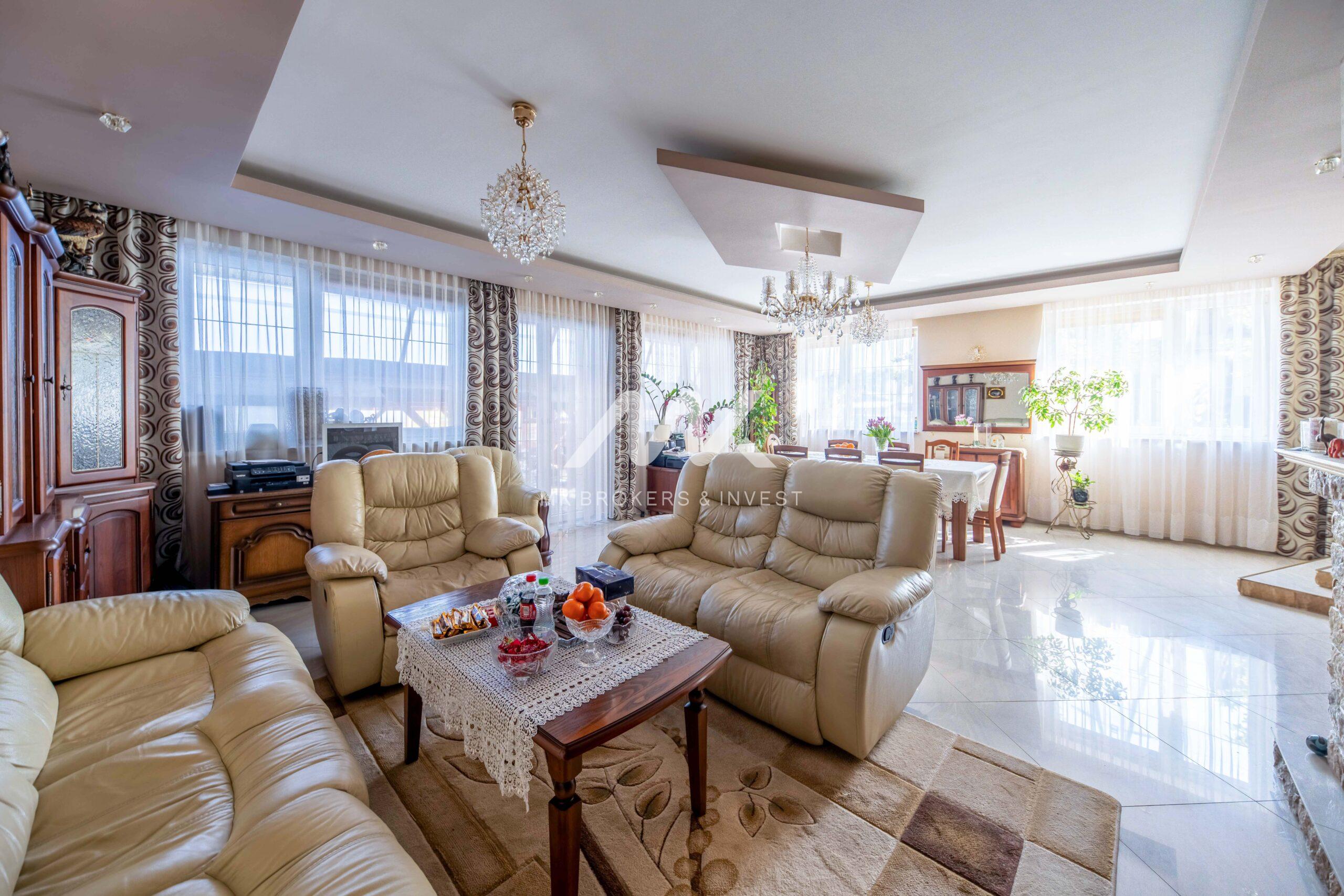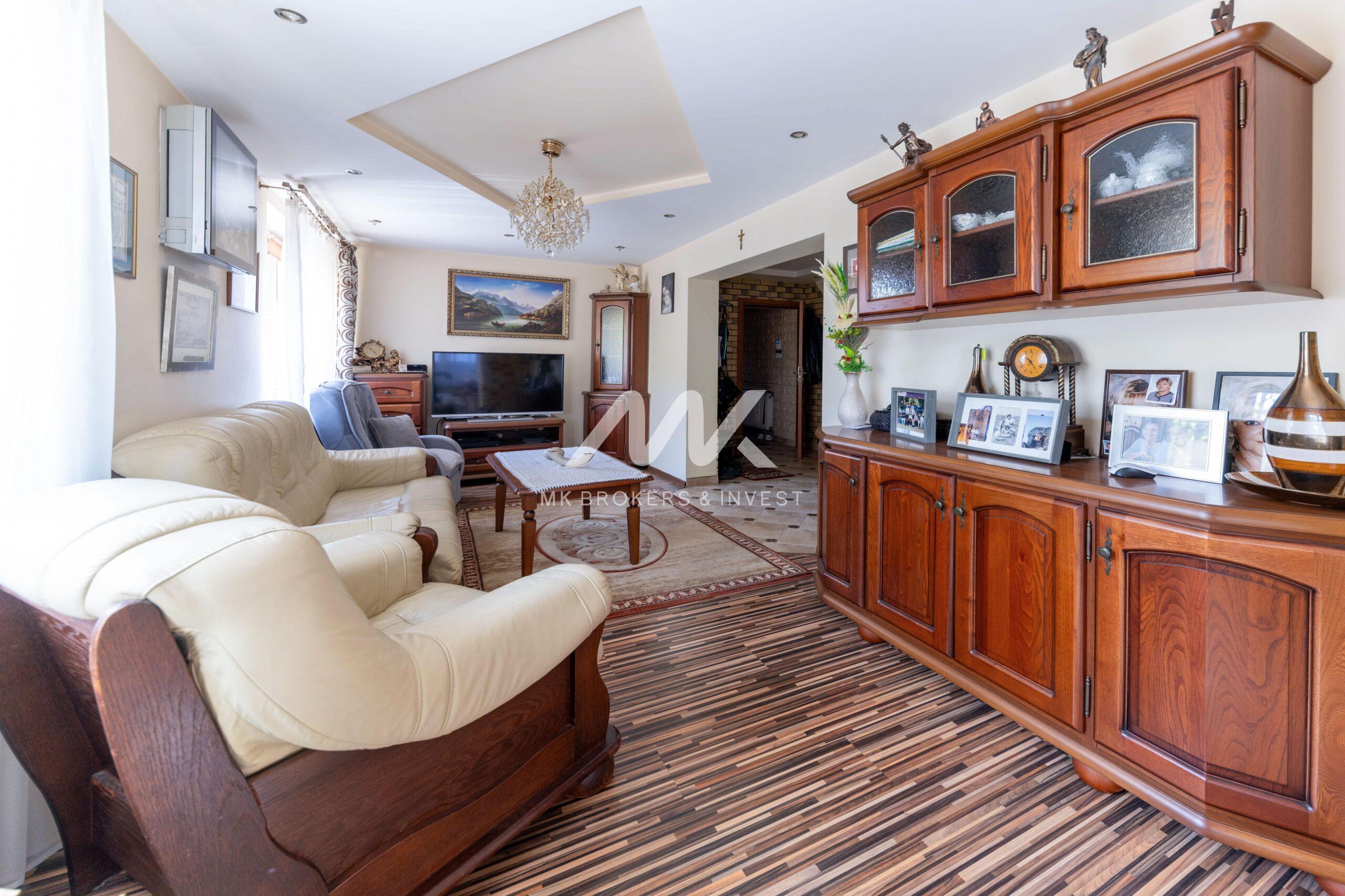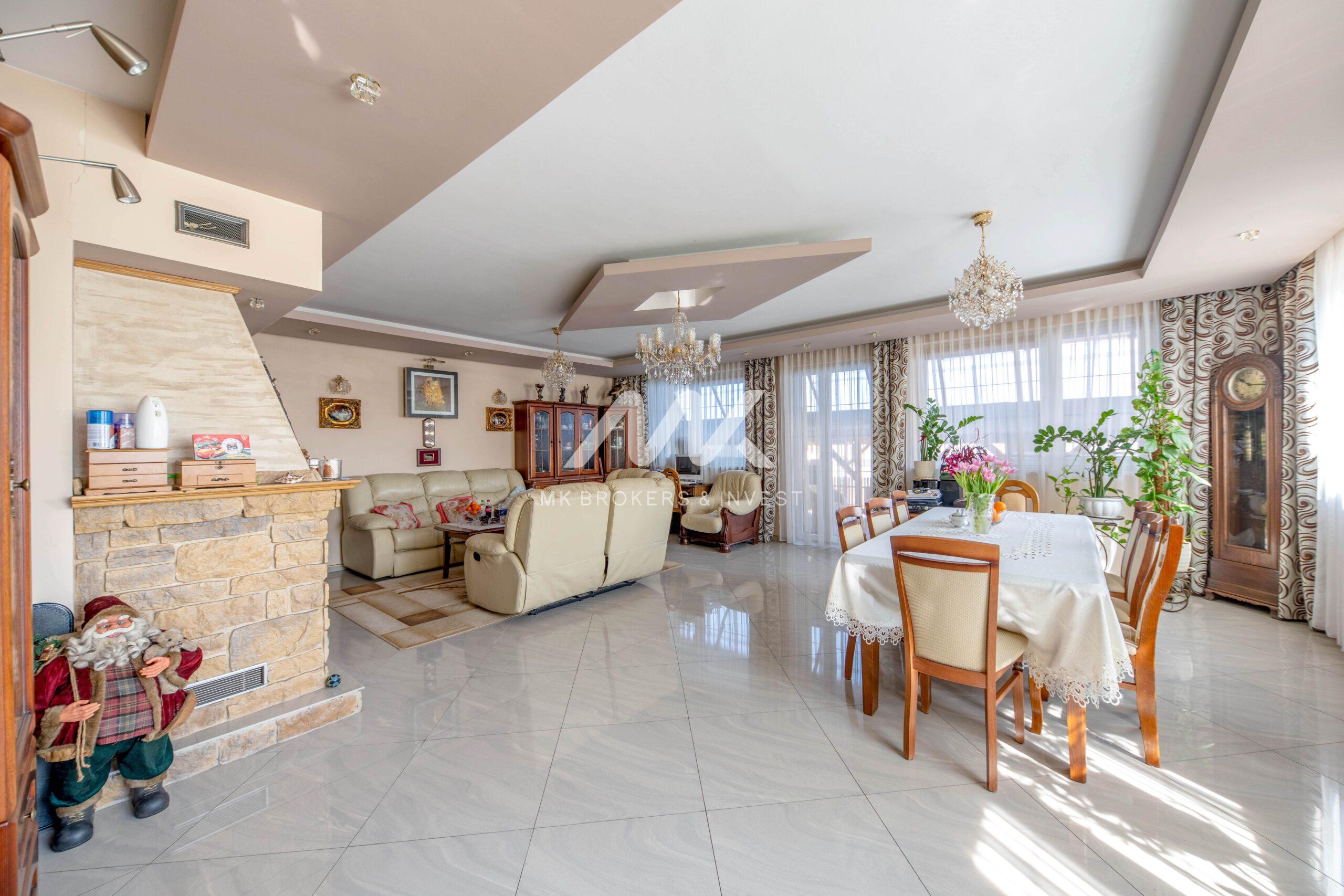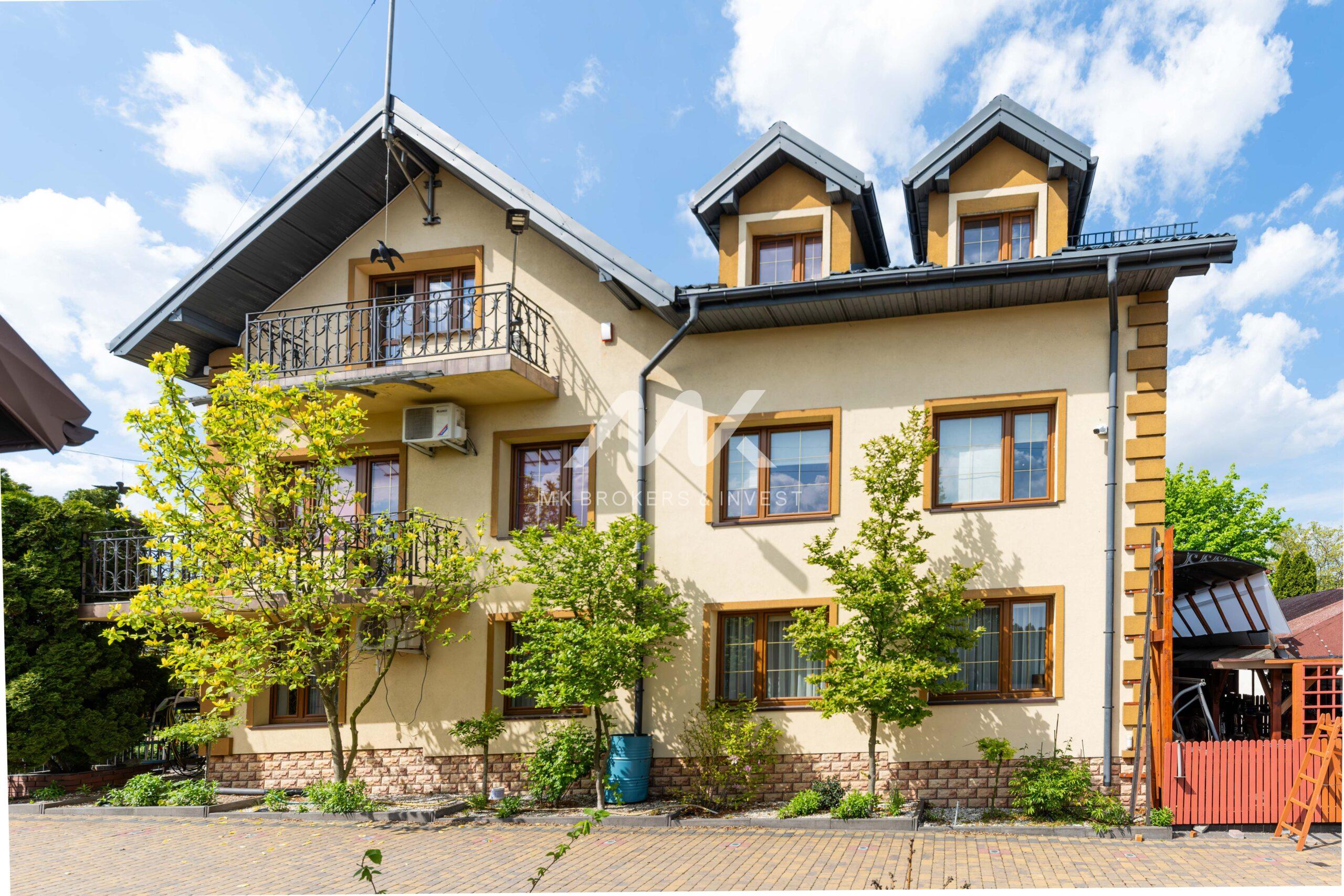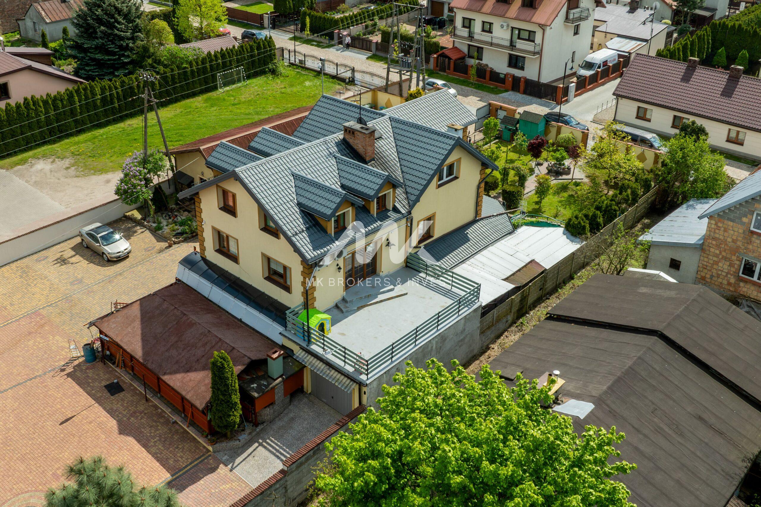 1. dom o powierzchni ok 300 m2, składający się z 3 kondygnacji, wyposażony w monitoring i klimatyzację. Na pierwszym piętrze duży taras, a na parterze obszerna zadaszona wiata grillowa.