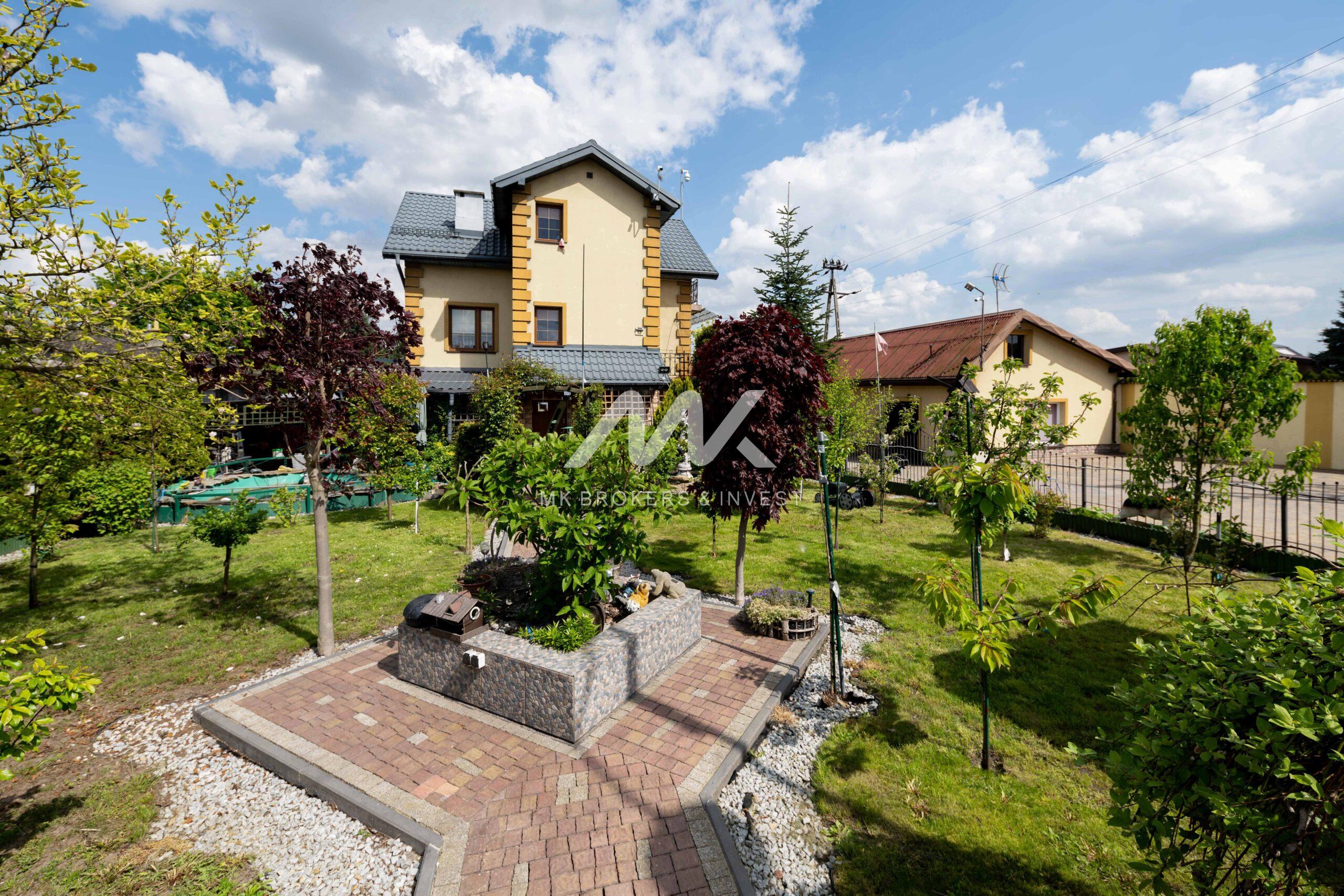 2. Zadbany ogród o powierzchni 400m2 – z pięknymi nasadzeniami, ścieżkami, 2 zarybione stawy i fontanna