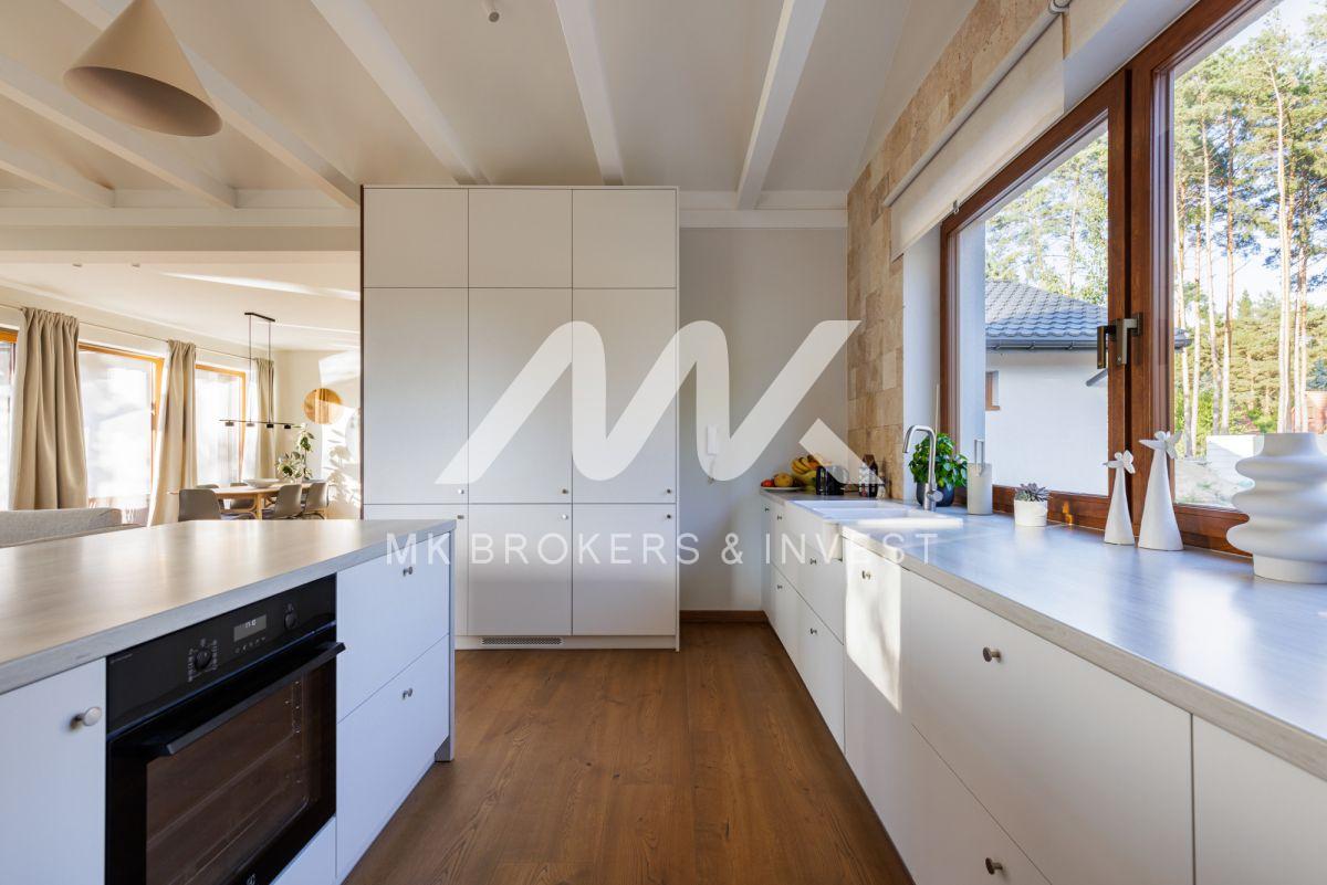 – Działka: 980 m², w pełni zagospodarowana z dbałością o detale, z prywatnym lasem stanowiącym niepowtarzalny element krajobrazu