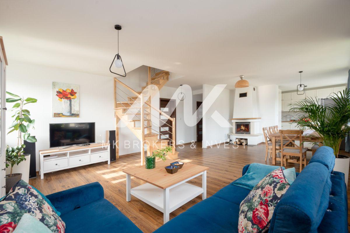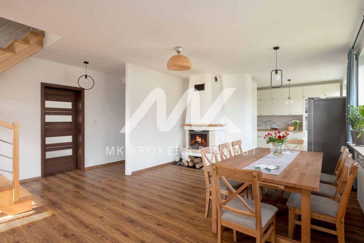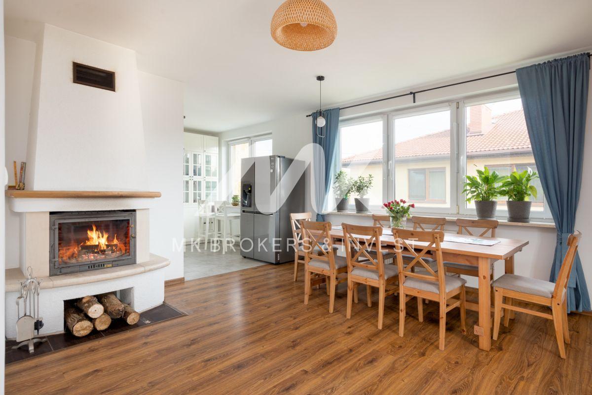 To eleganckie, 3-pokojowe mieszkanie z poddaszem mieści się w kameralnym, 2-piętrowym budynku na ul. Kalenickiej 12 w Warszawie. Budynek został wybudowany w 2008 roku, a jego architektura harmonijnie łączy się z zielonym otoczeniem, tworząc komfortową przestrzeń do życia. Mieszkanie wyróżnia się funkcjonalnym rozkładem pomieszczeń, dużą ilością naturalnego światła, kominkiem.