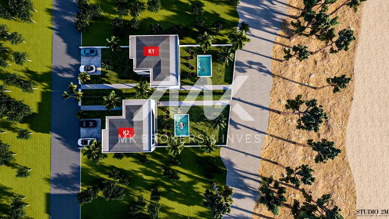 Two one-story houses of 149.14 sqm are stylish and offer a unique seaside living experience.