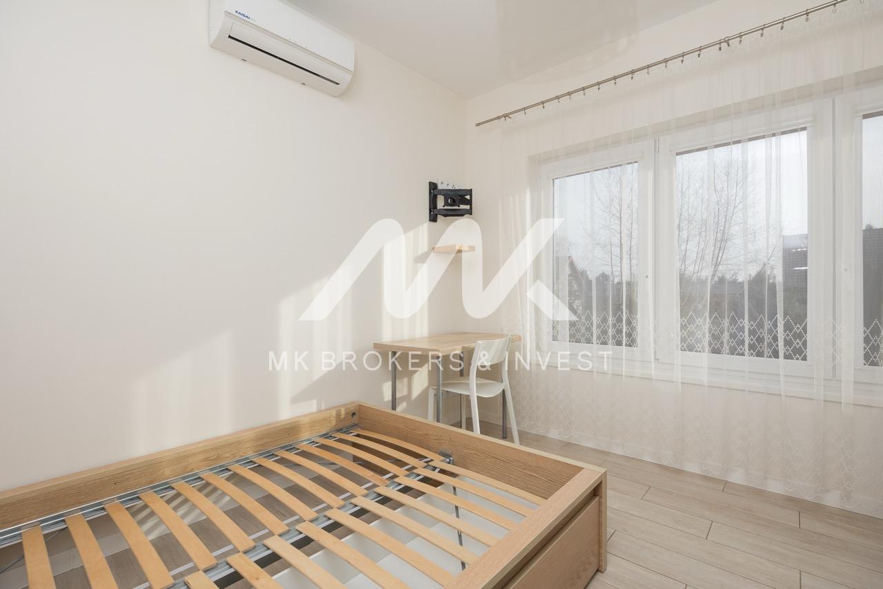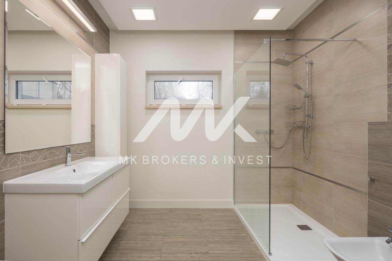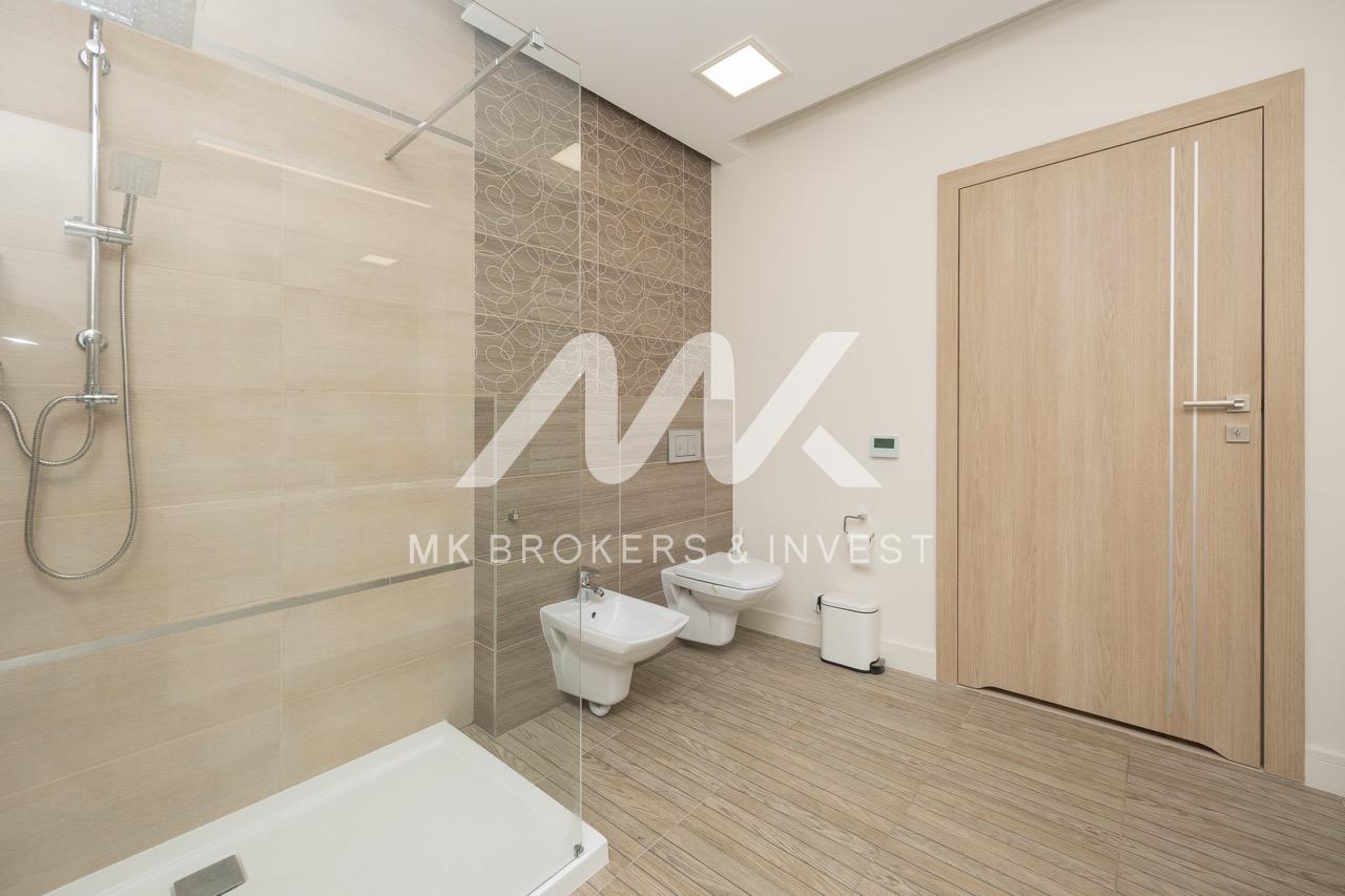 Strefa odpoczynkowa – Dwa przestronne pokoje, sypialnia z garderobą oraz elegancka łazienka z dużym prysznicem, WC i bidetem.
