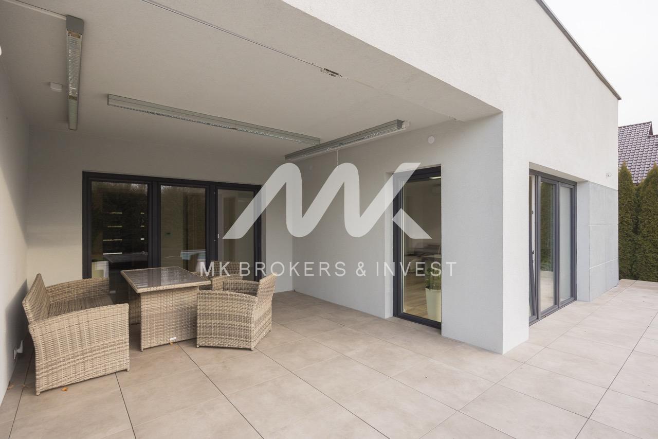 Nieruchomość została zaprojektowana i zbudowana z najwyższą dbałością o detale, z użyciem materiałów oraz technologii renomowanych firm. W domach zainstalowano m.in. okna Oknoplast (3-szybowe, ciepły montaż), instalację fotowoltaiczną Huawei, klimatyzację Kaisai i Midea, a także systemy alarmowe i monitoring (Satel). Dodatkowo, dzięki zastosowaniu pomp ciepła i systemów grzewczych najnowszej generacji, koszty utrzymania nieruchomości są wyjątkowo niskie.