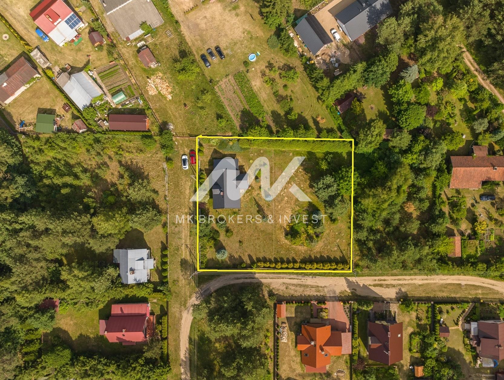 Dom stoi na jednej działce, drugą można sprzedać, jednak obecnie te dwie działki tworzą jedną całość, cały teren jest ogrodzony.