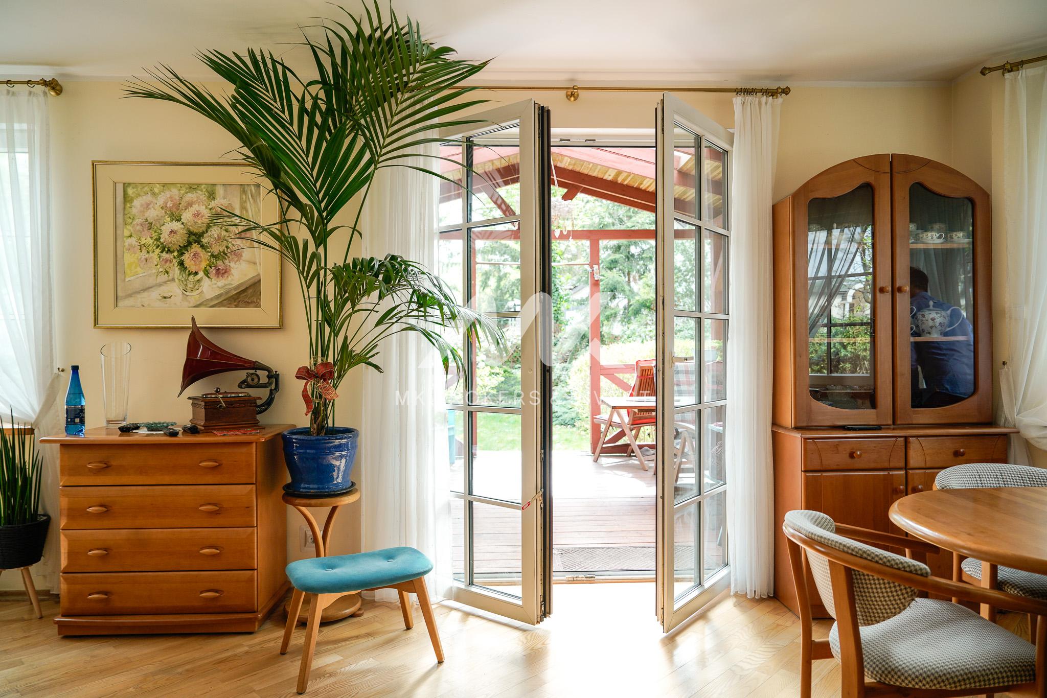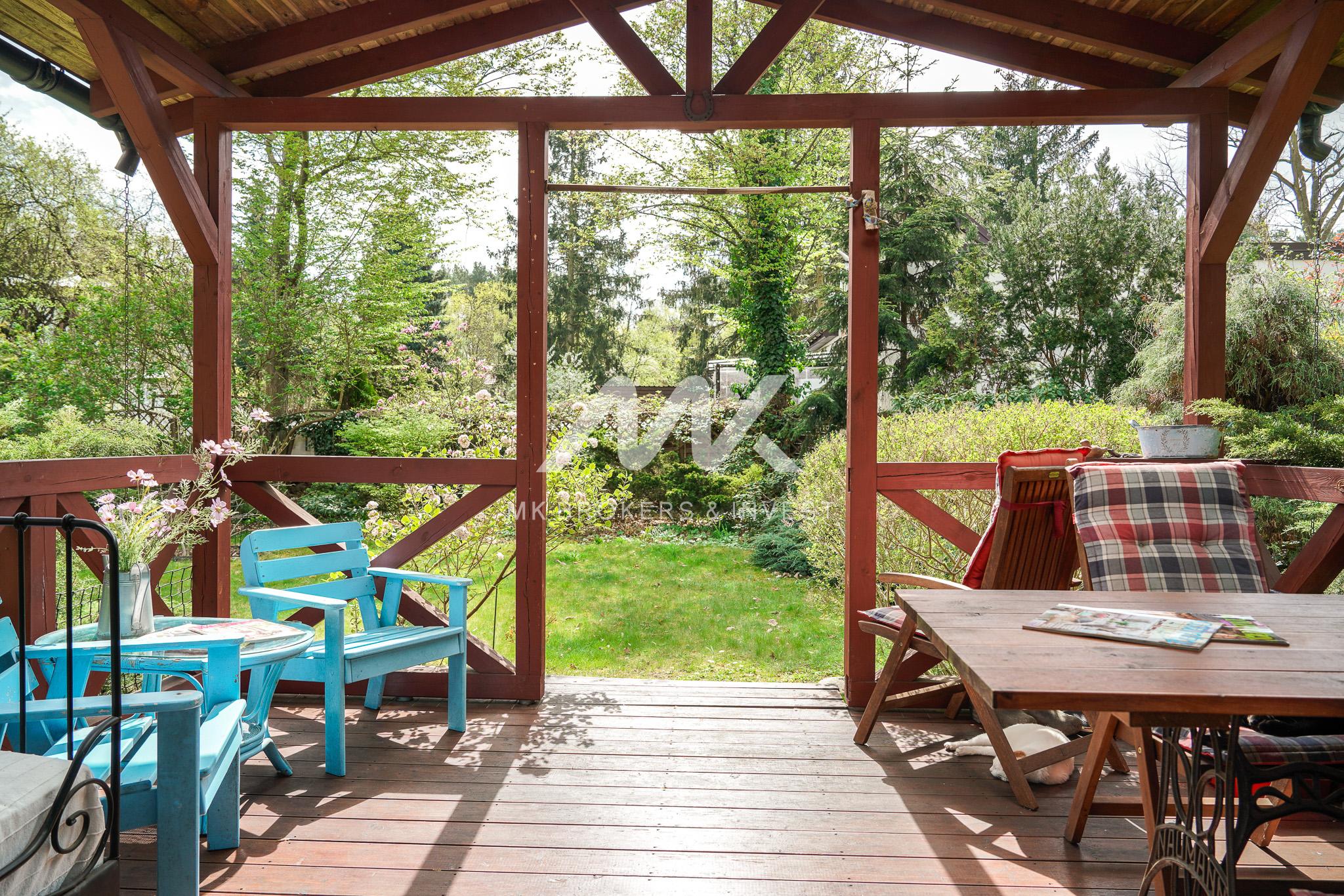 Na zewnątrz czeka na Ciebie prawdziwa oaza spokoju – pięknie zagospodarowany ogród, w którym drzewa, krzewy i byliny tworzą niepowtarzalną atmosferę. To idealne miejsce, aby odpocząć i zregenerować siły po ciężkim dniu pracy, delektując się bliskością natury.