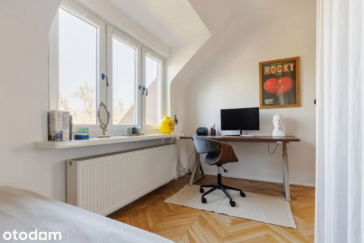 * duża piwnica (ok. 20 m²) z oknem – obecnie zaaranżowana jako biuro (idealna do pracy zdalnej lub działalności).