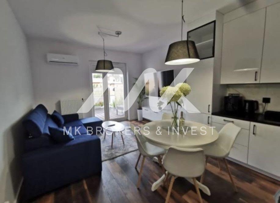 Apartament został starannie wyremontowany i wykończony z dbałością o detale. Jasna, ponadczasowa kolorystyka oraz duże przeszklenia tworzą przestrzeń pełną światła i harmonii. Salon płynnie łączy się z ogrodem, stanowiąc naturalne przedłużenie strefy dziennej.