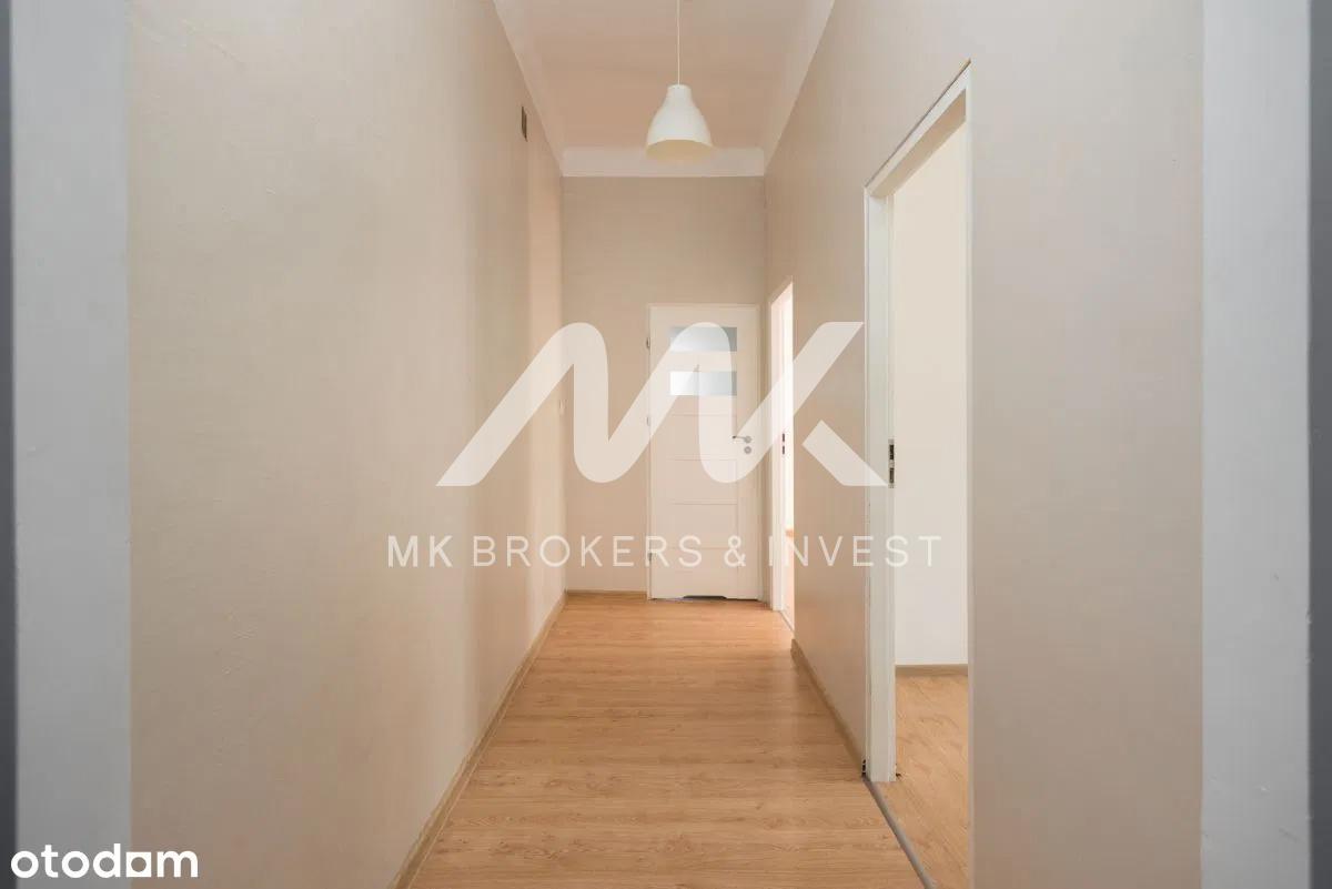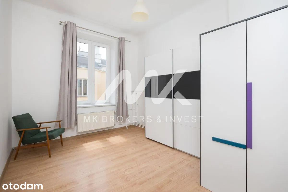 Mieszkanie o powierzchni 60,44 m², położone na ostatnim, piątym piętrze (brak windy), wyróżnia się ponadstandardową wysokością pomieszczeń (3,2 m) i spokojnym położeniem z oknami wychodzącymi na zielone patio. Pomimo centralnej lokalizacji, mieszkanie jest ciche dzięki położeniu w drugim rzędzie od głównej ulicy.