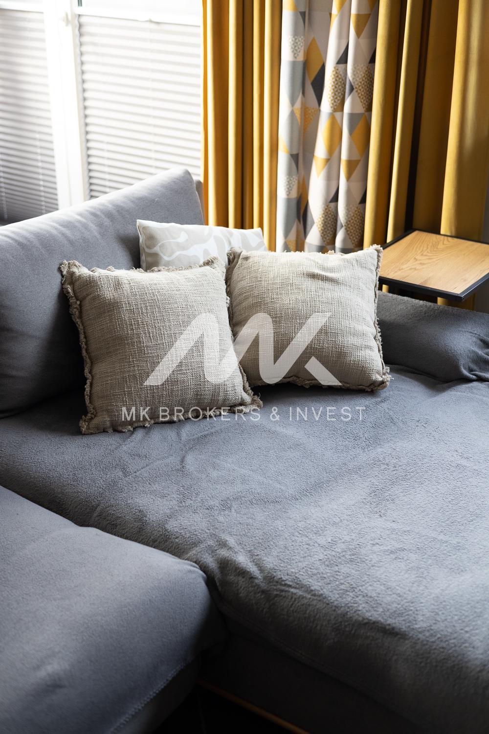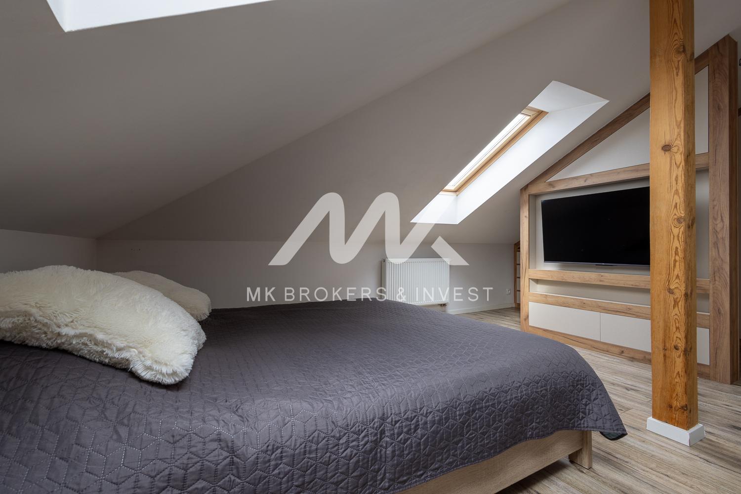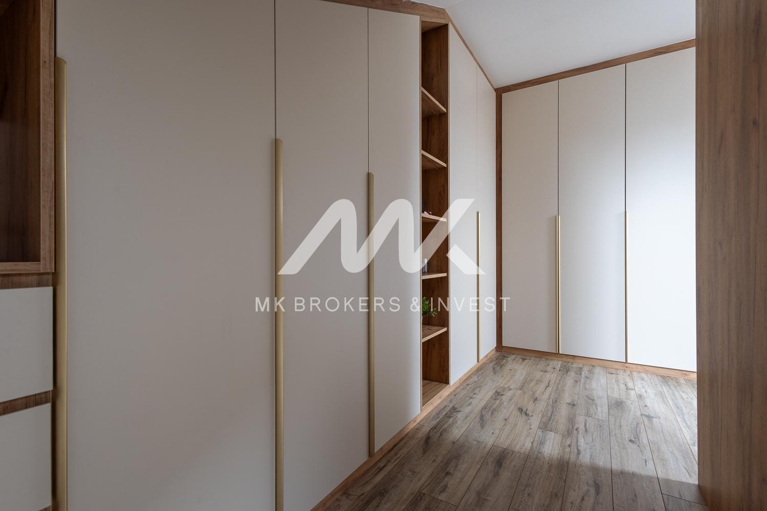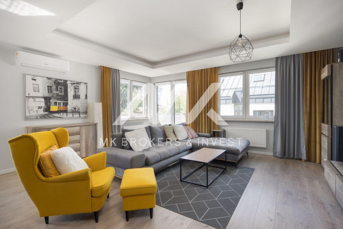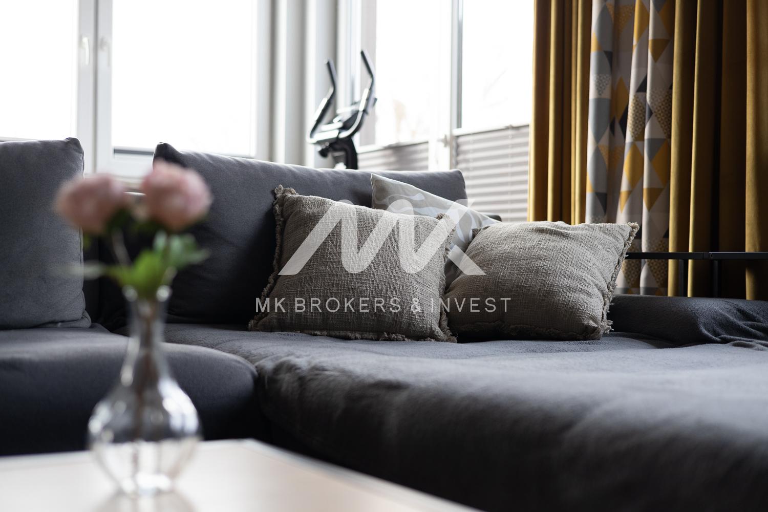 Mieszkanie składa się z 3 sypialni, dużego salonu z kozą, z dużej kuchni, 2 łazienek, holu, garderoby, pralni, pomieszczenia gospodarczego, dużego balkonu.