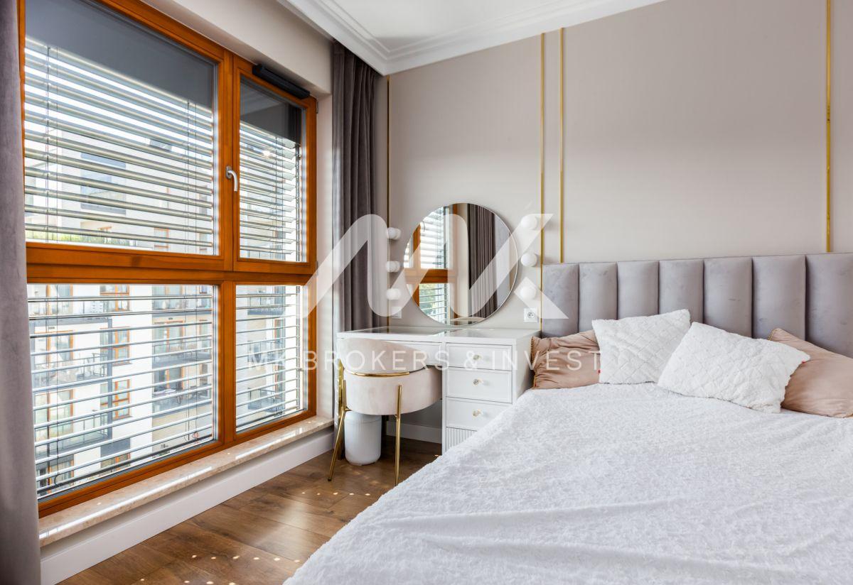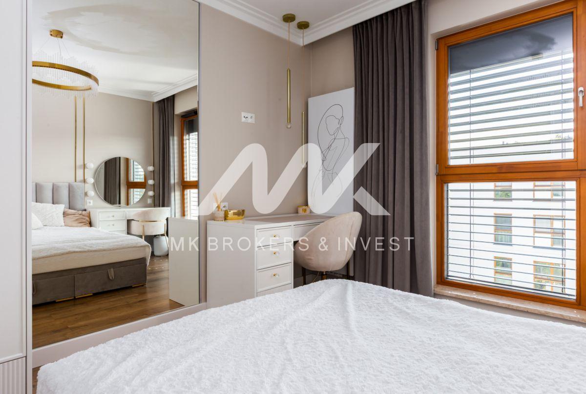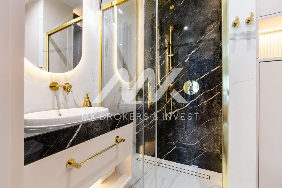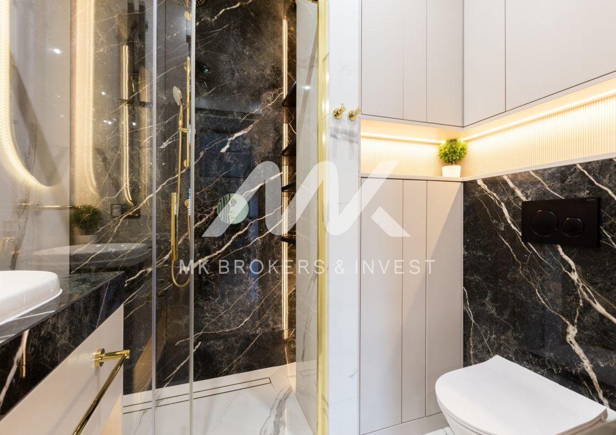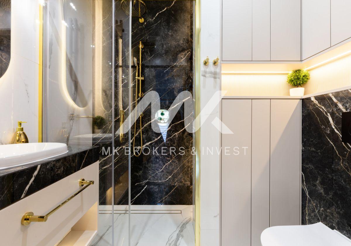 Apartament został wykończony z wyjątkową dbałością o detale, z użyciem najwyższej jakości materiałów. Nowoczesna kuchnia w zabudowie z pełnym wyposażeniem AGD, elegancka łazienka, funkcjonalne szafy w zabudowie i stylowe wnętrza – wszystko gotowe do zamieszkania, bez potrzeby dodatkowych inwestycji.