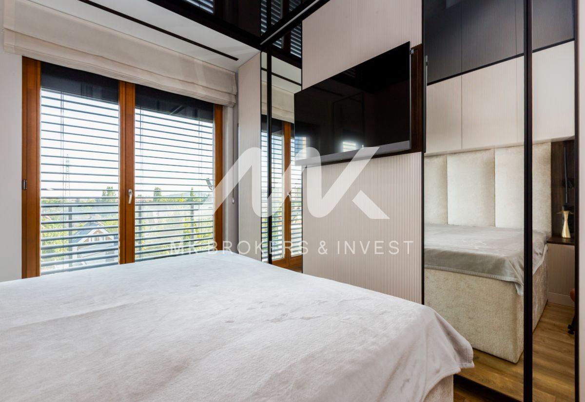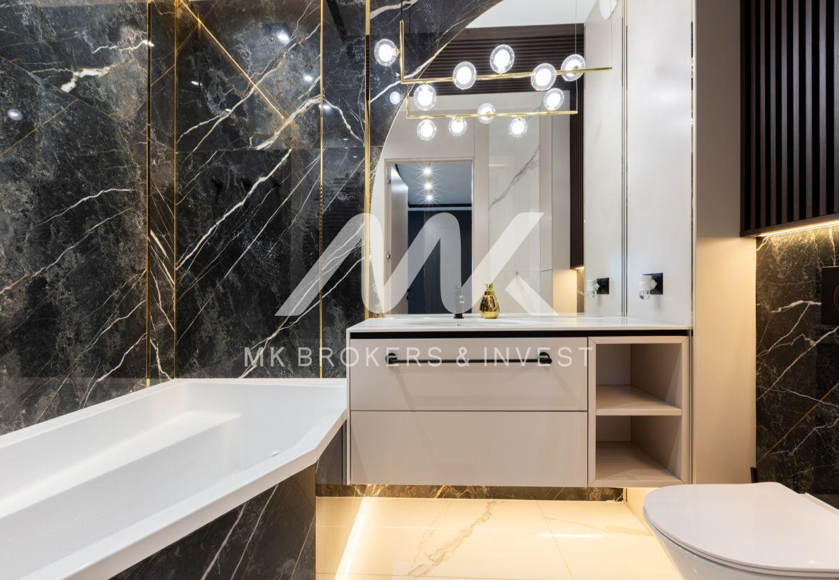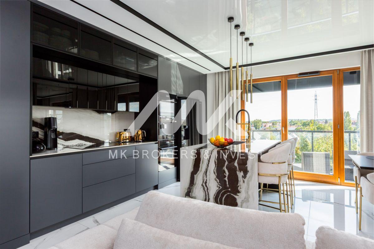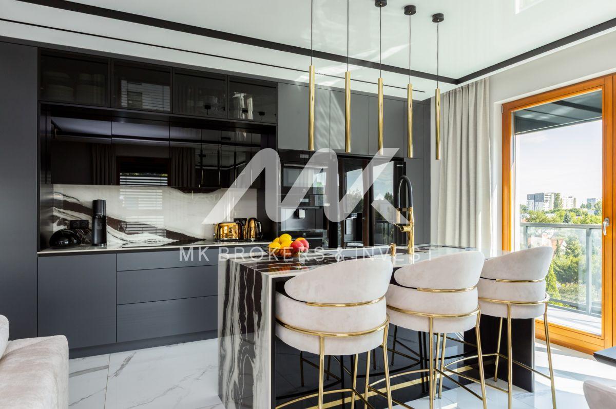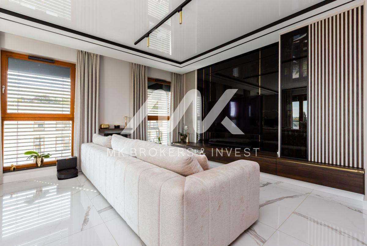 Apartament został wykończony z wyjątkową dbałością o detale, z użyciem najwyższej jakości materiałów. Nowoczesna kuchnia w zabudowie z pełnym wyposażeniem AGD, elegancka łazienka, funkcjonalne szafy w zabudowie i stylowe wnętrza – wszystko gotowe do zamieszkania, bez potrzeby dodatkowych inwestycji.