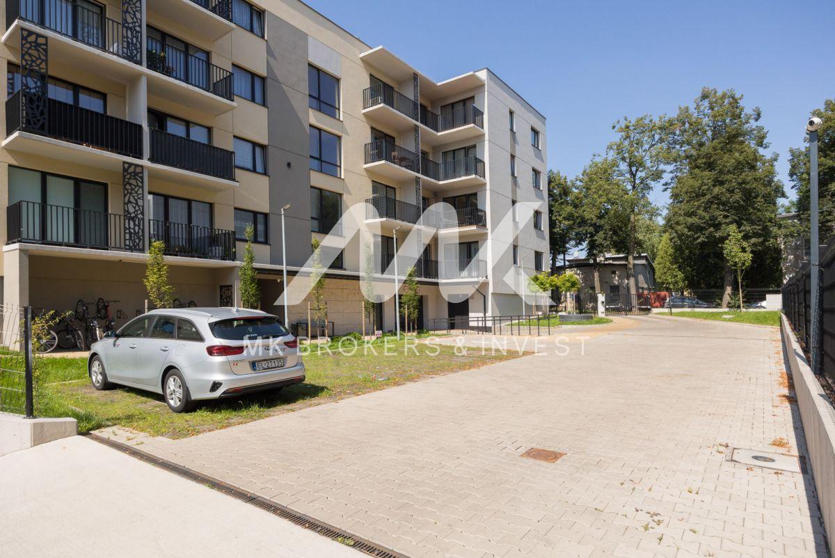 Osiedle otoczone zielenią, z alejkami spacerowymi i miejscami do odpoczynku.