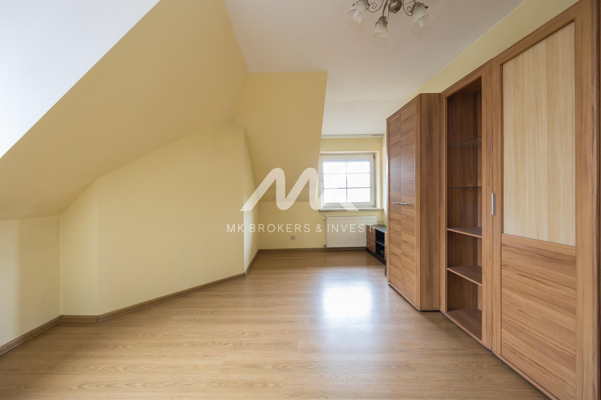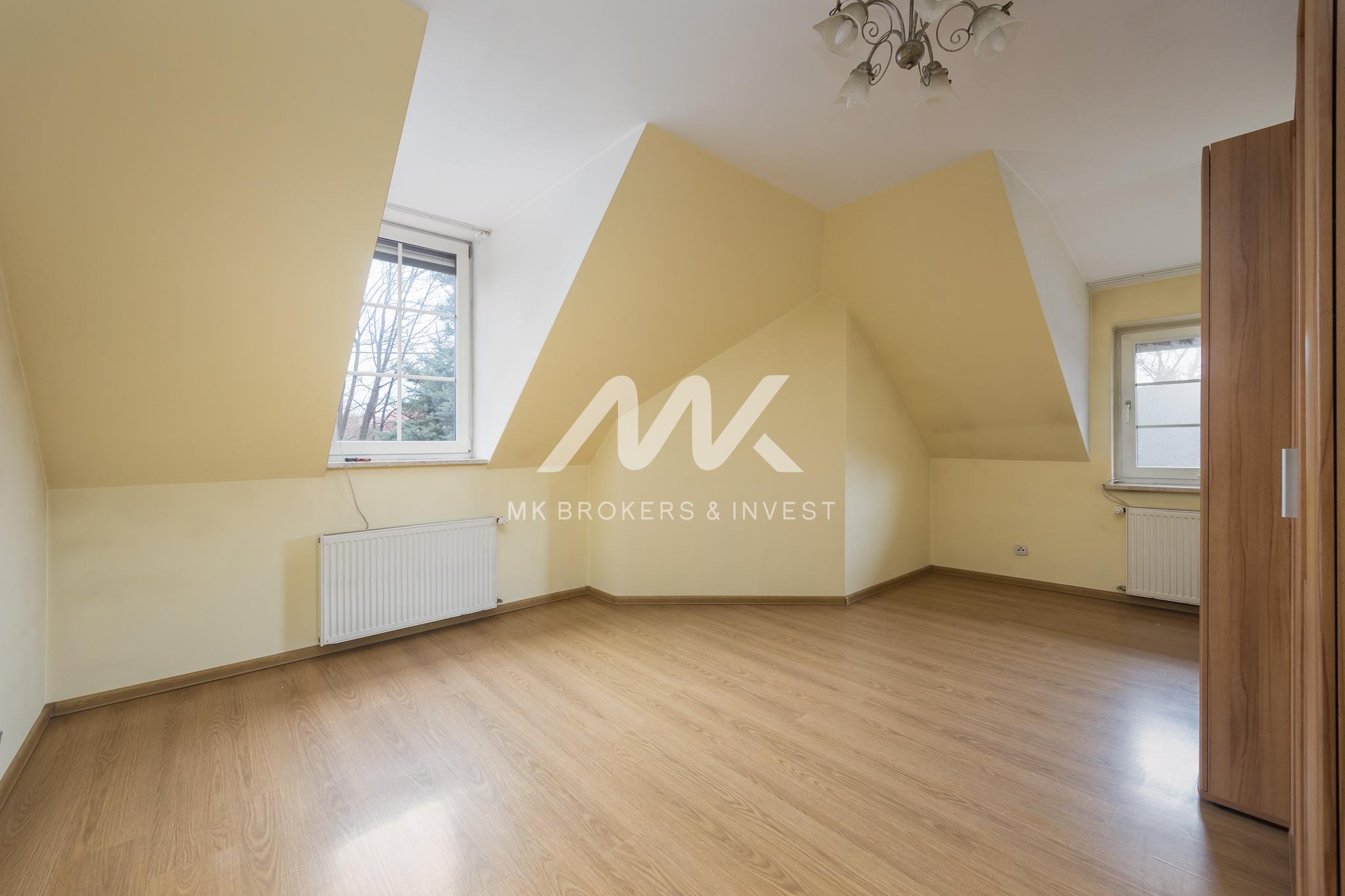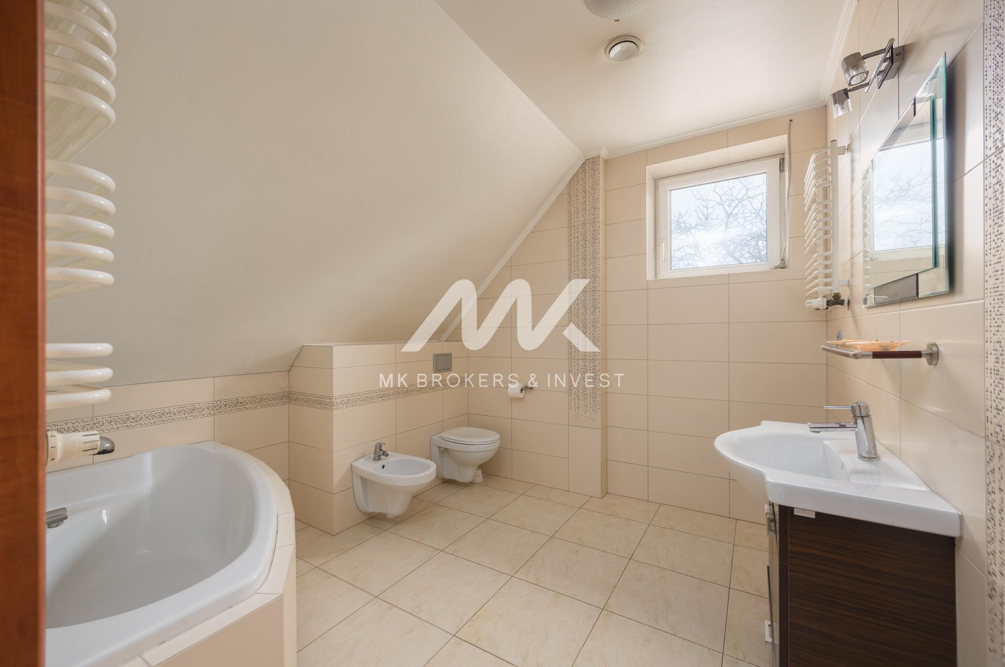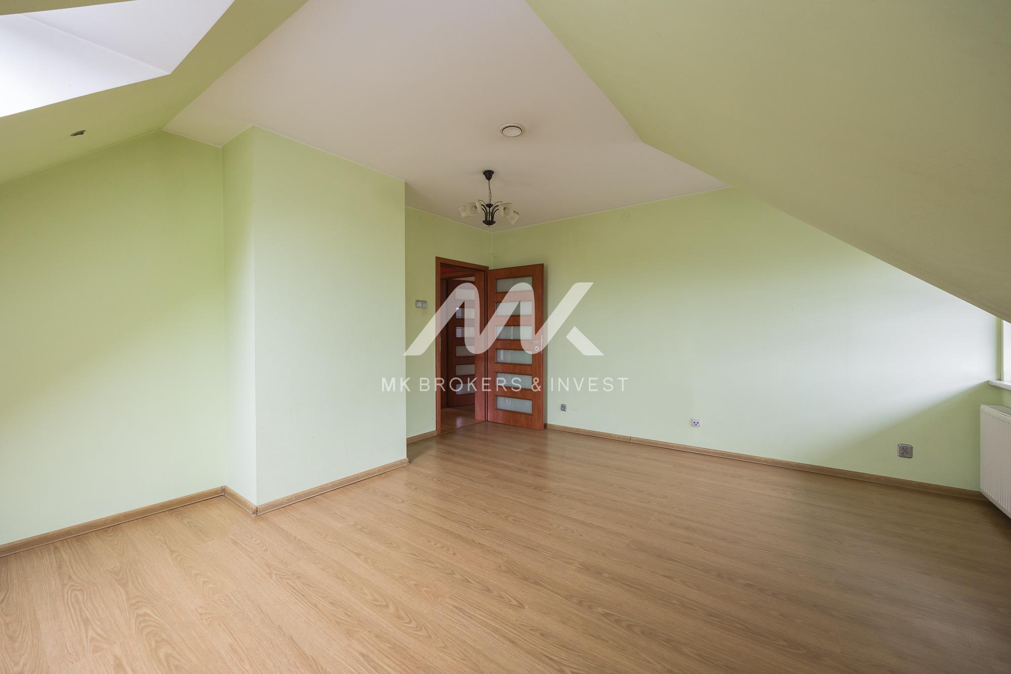 Na piętrze znajdują się trzy przytulne sypialnie, z główną sypialnią posiadającą własny balkon. Jeden z pokoi na piętrze oświetlony jest także dodatkowym oknem dachowym. Łazienka na piętrze oferuje wannę oraz bidet.