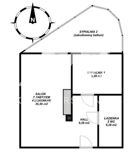 Rozkład: Przestronny apartament o powierzchni 61,5 m², z ekspozycją na północ, znajduje się na 6 piętrze.
