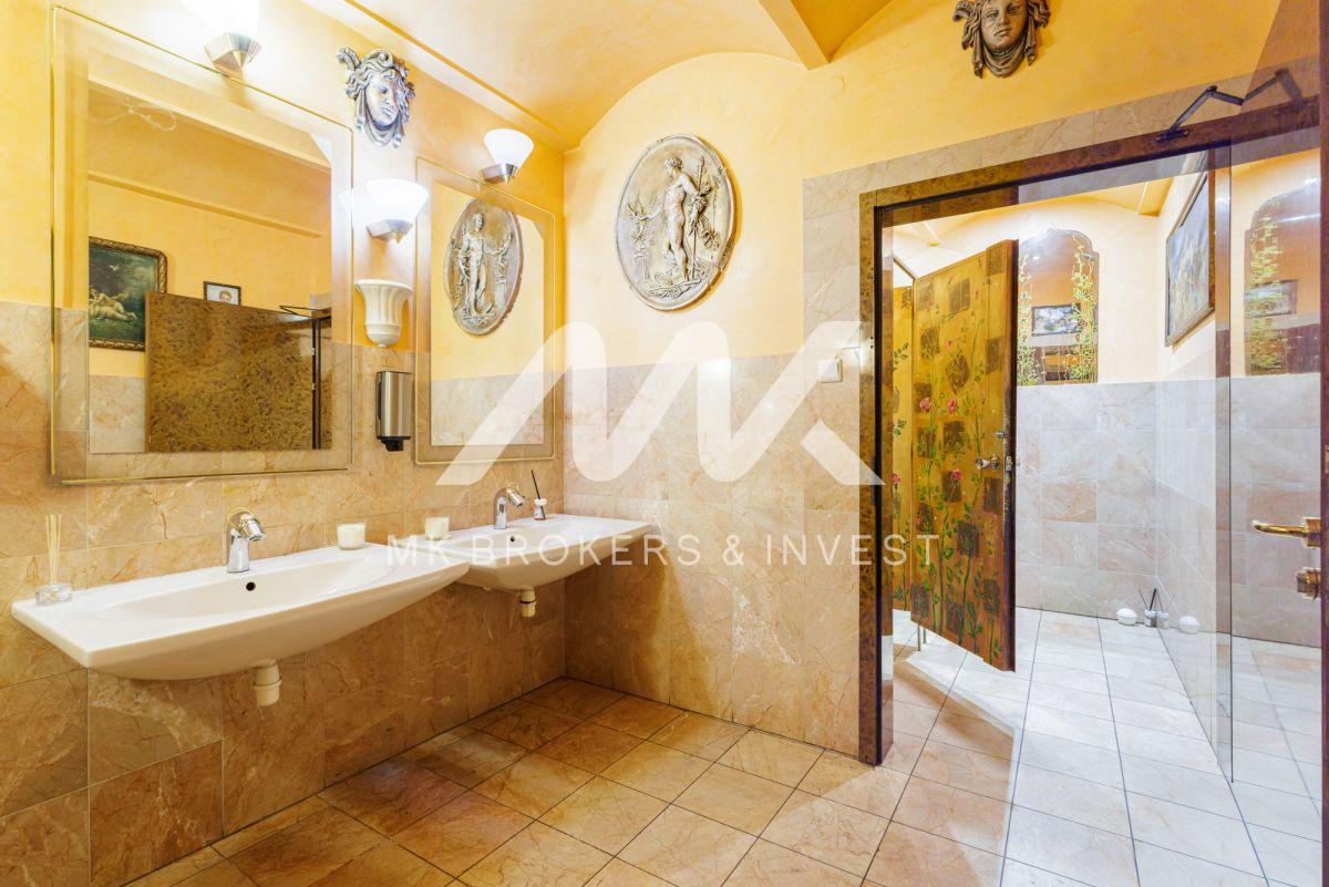 – domek gościnny ok. 250 m² – możliwość stworzenia apartamentów dla kadry trenerskiej, medycznej lub też pacjentów ( na obecną chwilę znajdują się tam 3 pokoje z prywatnymi łazienkami ),